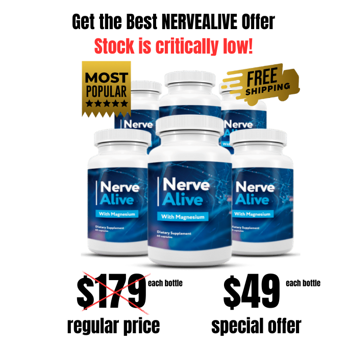 Take advantage of the incredible opportunity available today to order the NerveAlive supplement. With an astounding discount of 73% OFF and the added benefit of free shipping, this offer is simply irresistible. Act swiftly to secure your supply, as this limited-time promotion won`t be available for long. Plus, rest assured with our 60-day money-back guarantee, providing you with complete peace of mind. By making the wise choice to purchase now, you can save a remarkable $49 while experiencing the remarkable benefits of NerveAlive. Don`t miss out on this extraordinary chance to boost your well-being and save big! Click here to check if the discount is still available.